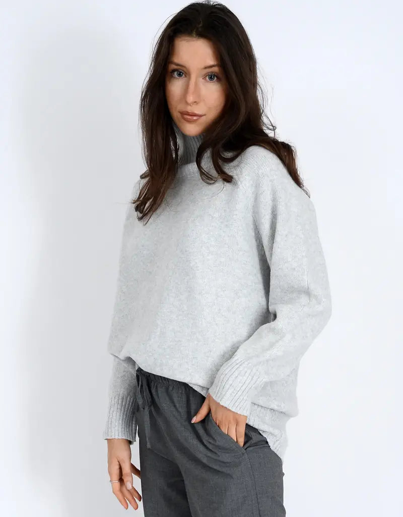 The Anthousa Mock Neck Knit offers a refined blend of comfort and style. Crafted in a soft dove grey, this lightweight sweater elevates your wardrobe effortlessly. Its versatile design pairs beautifully with denim or skirts, making it an essential piece for cooler seasons. Experience understated elegance and cozy warmth in one sophisticated knit.