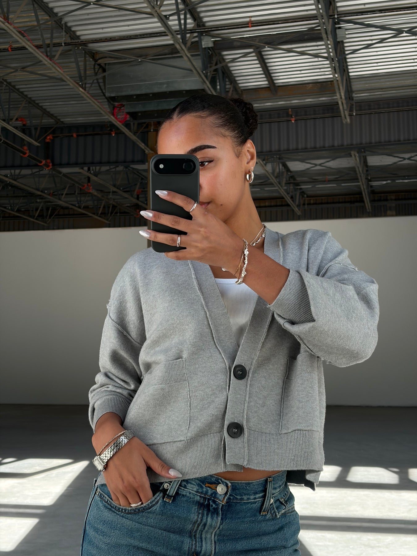 The Patsy Cardigan offers a sophisticated twist on comfort with its relaxed fit and deep V neckline, perfect for layering with elegance. Featuring rib trim and exposed seams, this piece highlights subtle detailing that elevates its understated design. The step hem adds a refined finish, making it an ideal choice for a polished yet effortless look.