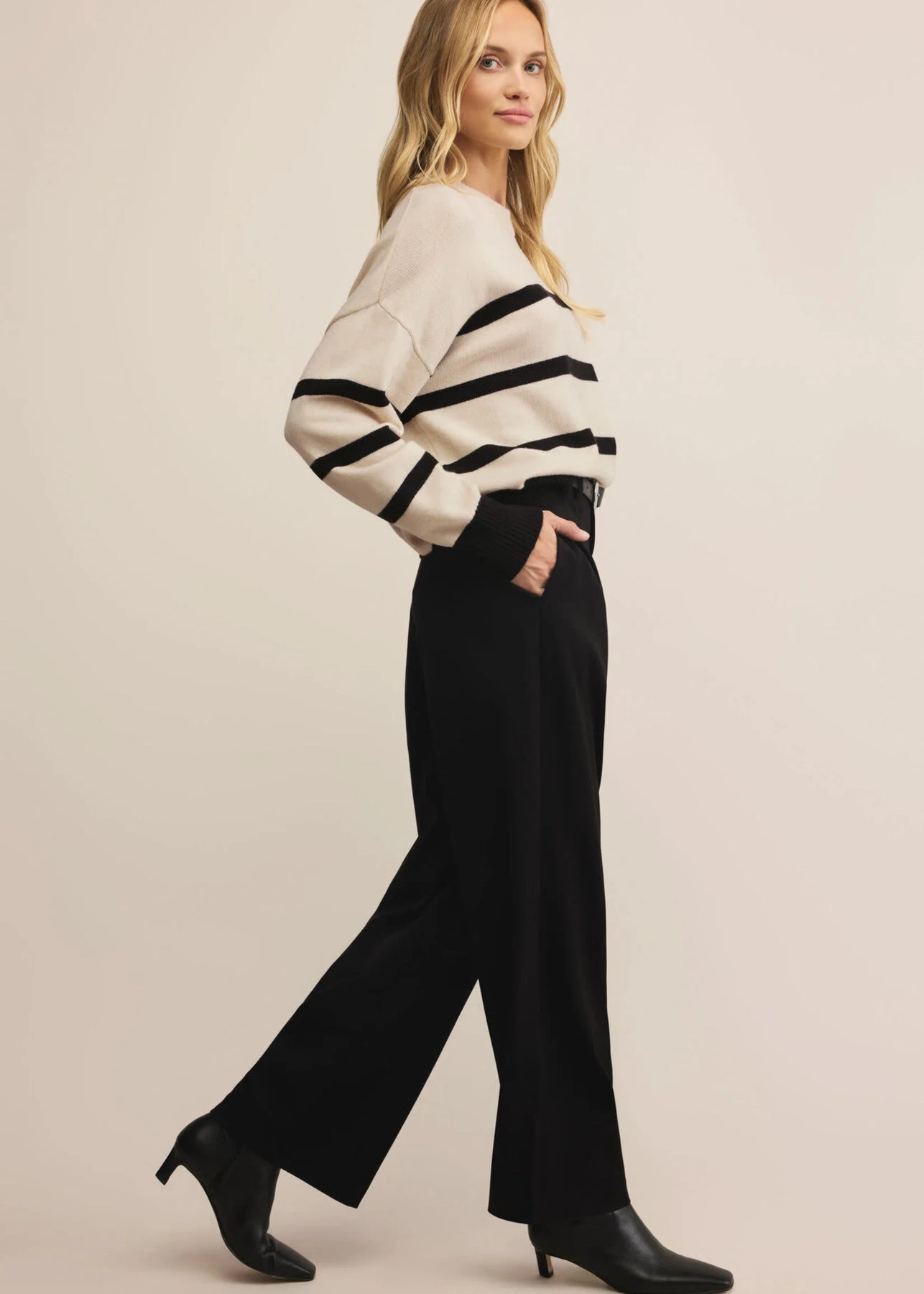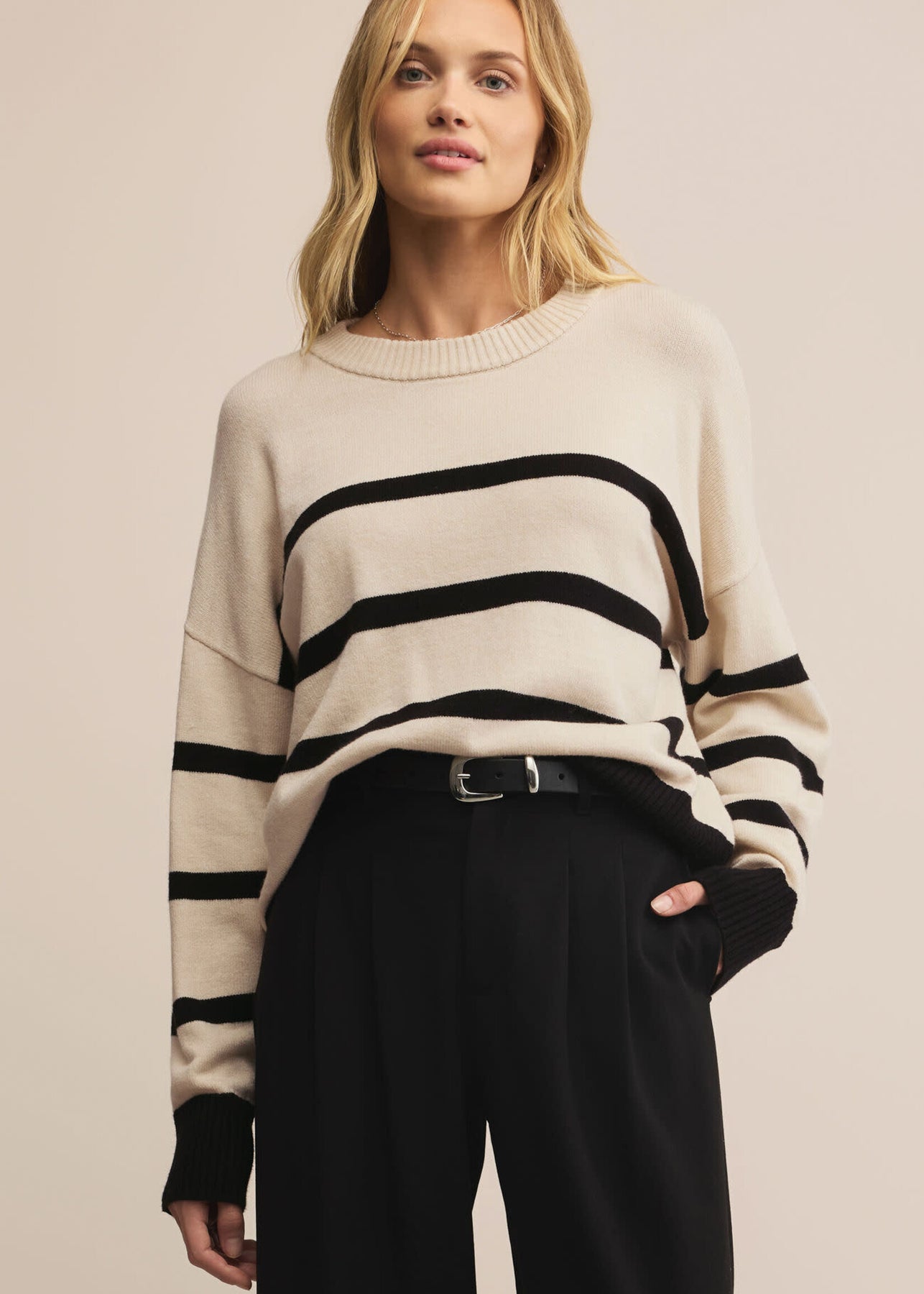 Elevate your Fall wardrobe with the Jordane Striped Sweater. This refined piece combines warmth and a distinctive striped pattern to add subtle sophistication to your look.